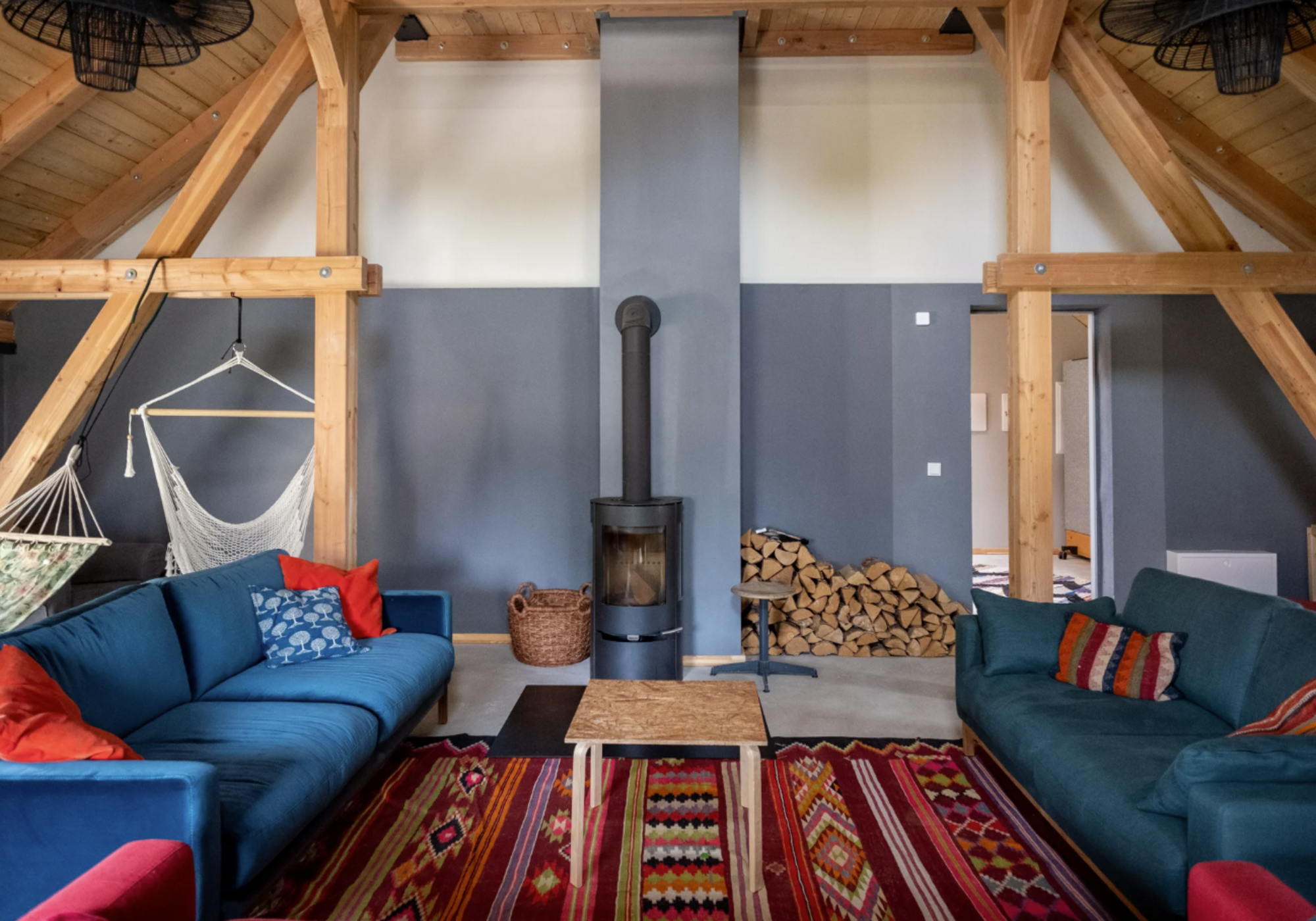 Das Raumkonzept der ausgebauten Scheune bietet sowohl private Rückzugsorte als auch Gemeinschaftsräume, wie z.B. Co-Working-Spaces. Damit wird die Möglichkeit generiert, seinen Arbeitsalltag selbst gestalten zu können und dabei die Werkzeuge und Konzepte des Creative Work Away zu nutzen. Die kindersichere Studioküche kann als Spielzimmer auch für die Kinderbetreuung der Workshopteilnehmenden dienen.